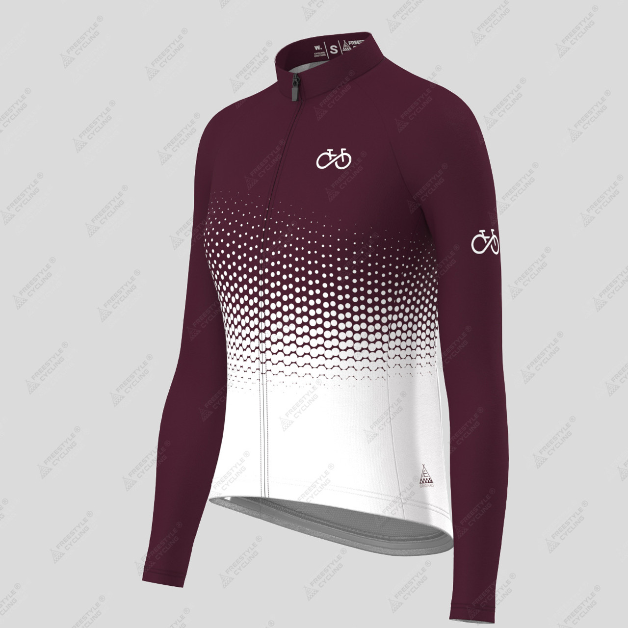 Bike Forever Gradient Dots Women's LS Cycling Jersey - Burgundy