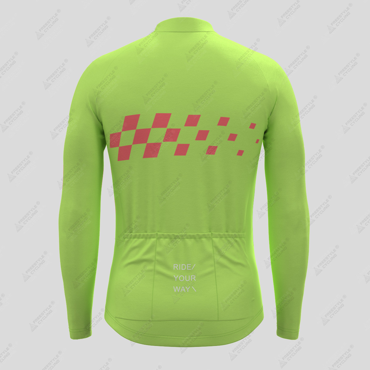 Men's Gradient Race Flag LS Cycling Jersey - Green/Guava